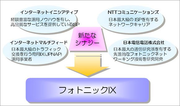 株式会社インターネットイニシアティブ(IIJ、本社:東京都千代田区、代表取締役社長:鈴木幸一)、インターネットマルチフィード株式会社(MFEED、本社:東京都千代田区、代表取締役社長:鈴木幸一)、NTTコミュニケーションズ株式会社(NTT Com、本社:東京都千代田区、代表取締役社長:鈴木正誠)、および日本電信電話株式会社(NTT、本社:東京都千代田区、代表取締役社長:和田紀夫)の4社は、2004年9月3日より2007年3月末日まで、フォトニックネットワーキング技術※1を用いた次世代インターネット相互接続に関する共同実験を実施しており、今回IPルータと光クロスコネクト(OXC:Optical Cross Connect)※2を用いたフォトニックIXの基本動作を実証しました。
