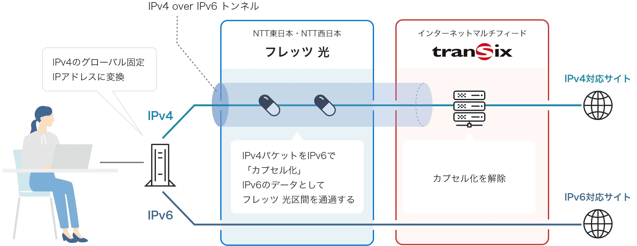 IPoE接続サービス「transix」(VNE) IPv4 over IPv6接続「固定IP (IPIP)」